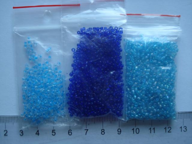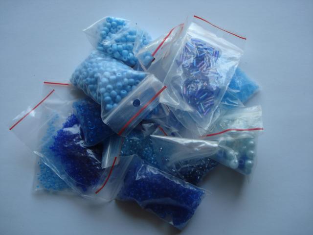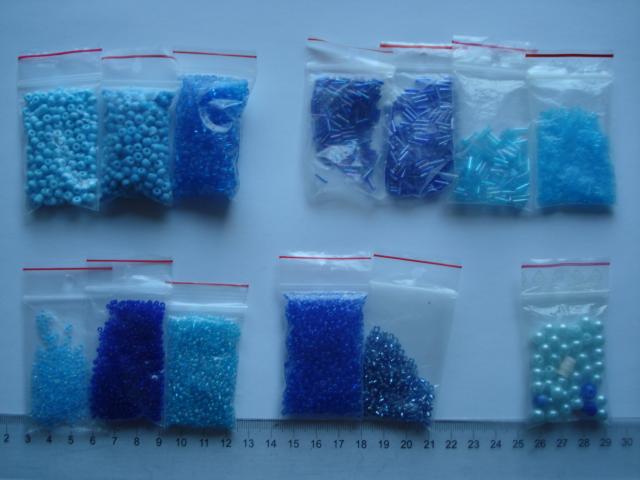 Karoliukai rankdarbiams (mėlynų atspalvių)