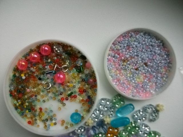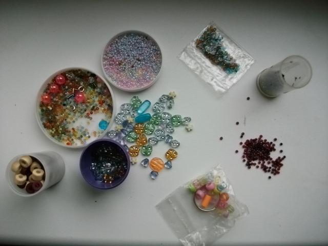daug ivairiu karoliuku,yra biseris,mediniai ir metaliniai.siaip spalvotu dar