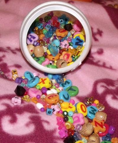 DIDŽIULĖ dėžė įvairiausių karoliukų. Yra daugybė raidžių, įv ornamentinio pobūdžio karoliukų. Puiki galimybė paįvairinti savo rūbus,daiktus bei susiverti įvairiausių apyrankių ar karolių.