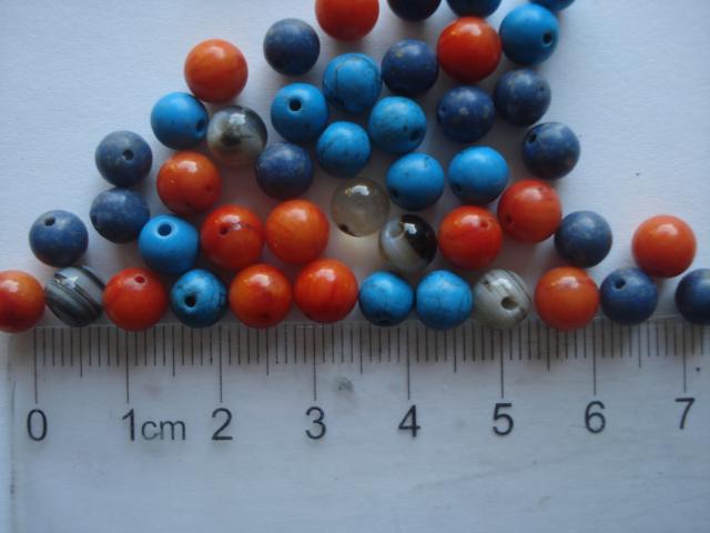 Turkis, koralas, raudoni akmenėliai (nepamenu pavadinimo), šviesūs rusvi akmenėliai