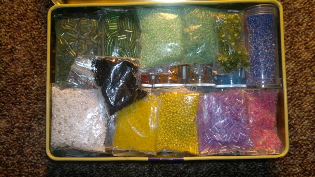 Karoliukai nauji, įvairių spalvų, adatų komplektas ir įvairios smulkmenos reikalingos vėrimui