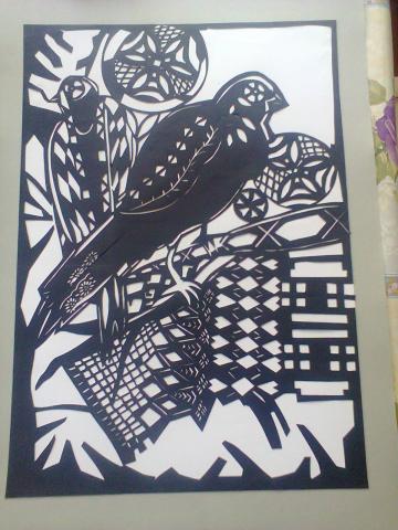 Labai gražus ir kruopščiai padarytas išpjaustinėtas paveikslas. Matmenys 29 X 42 cm. siūlykit kainą