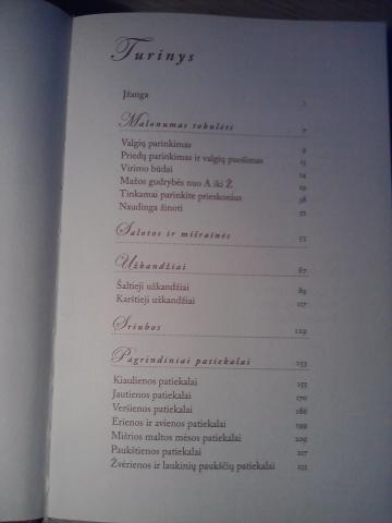 Receptu knyga "Kasdieniai ir sventiniai patiekalai" (462 psl.). Be apgadinimu, knyga beveik nenaudiota. Receptai ivairioms progoms (patiekalai, salotos, sriubos, desertai ir gerimai).