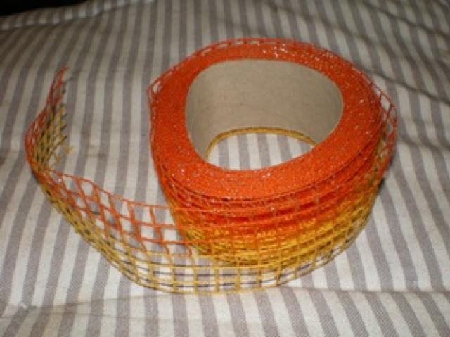 pradetas ritinys azurinio kaspino, spalva:oranzine/gelsva,like dar keletas metru, kaspino plotis apie 5cm