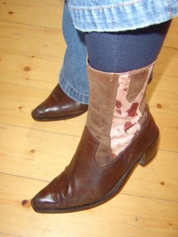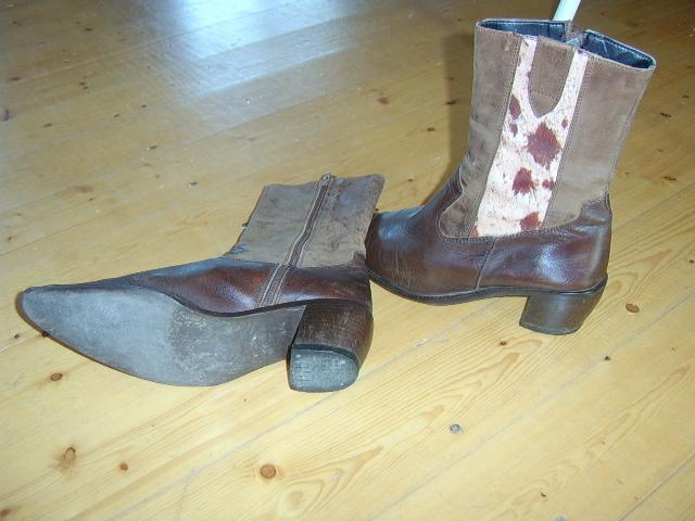 Gerokai paavėti, bet nenudrengti. Gan patogūs, nepersiauri labai tinka šokimui :) Natūrali oda viduj ir išorėj, puošti natūraliu kailiu.