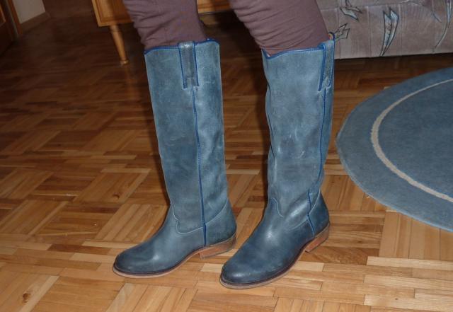 Kaubojiško stiliaus 37dydžio mėlyni batai. Odiniai, labai patogūs. Tinka tiek prie džinsų, tiek prie laisvos suknelės. Kaina 80lt (galima derėtis)