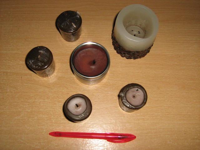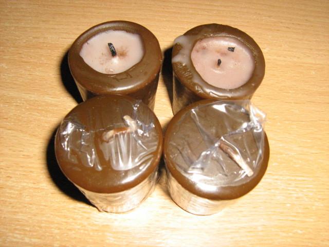 4 žvakės iš šešių yra naudotos, likusios dvi visiškai naujos. Skleidžia malonų kavos aromatą.