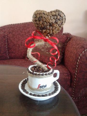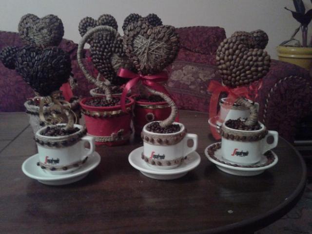 Kavos pupelių darbeliai puodelyje