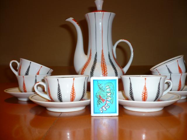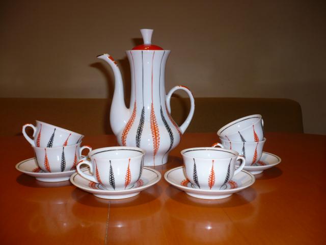 Labai dailus kavos servizas, 6 puodeliai, bet deja tik 4 lėkštutės..