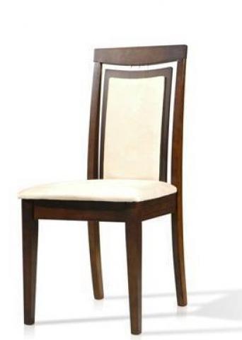 Parduodamos naujos valgomojo kambario kėdės, pagamintos iš kietmedžio. Spalva- tamsus riešutas. Aukštis- 96cm. Sėdynė ir atlošas aptraukti smėlio spalvos mikrofibros audiniu. Kėdės- pakuotėse.