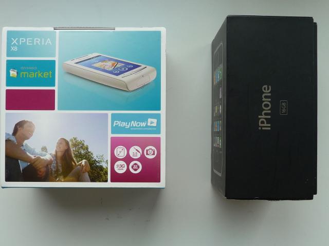 Keičiu du originalius telefonus - Apple iPhone 2G (16 GB) + Sony Ericsson Xperia X8 į Apple iPhone 4/ iPhone 3GS. iPhone'as naudotas, 16 GB modelis su pilna komplektacija - USB laidas, pakrovėjas (amerikietiško tipo rozetei, pridėsiu perėjimą į europietišką), stovas, originalios ausinės, dėžė ir dokumentai. (Labai norintiems dar yra vienas Apple lipdukas). Ekranas nesubraižytas, visada buvo su apsaugine plėvele (dabartinė šiek tiek nusidėvėjusi, pridėsiu naują). Galinė pusė turi pabraižymų, bet gyvent ga