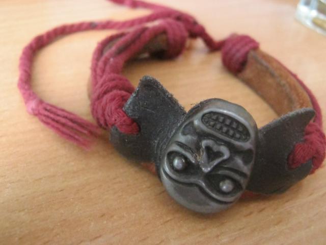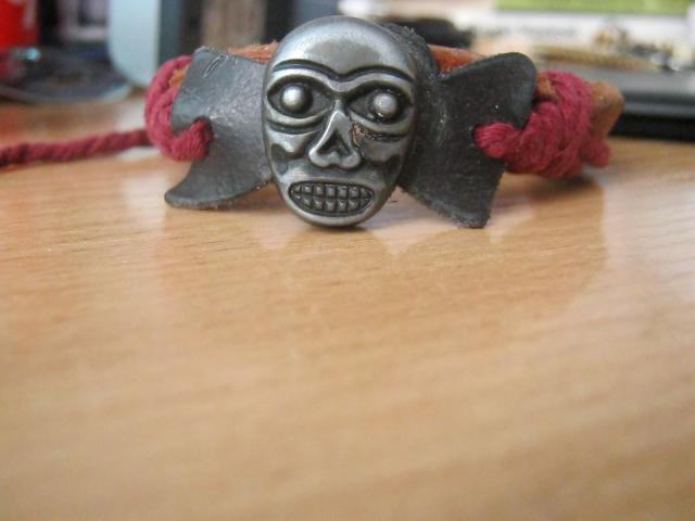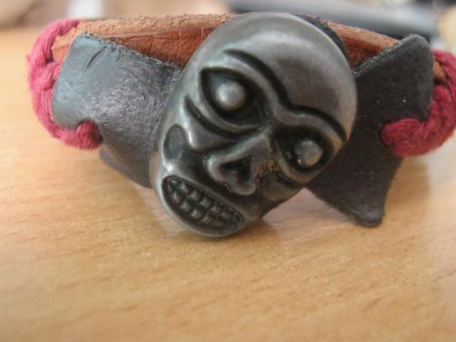 Kiek suprantu, tai ji odinė. Kaukolė labai įdomiai atrodo. :)