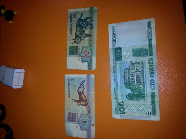 Keletas Baltarusijos rubliu 1 ir 10 rubliu 1992 metu , 100 rubliu 2000 metu