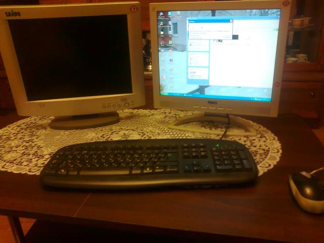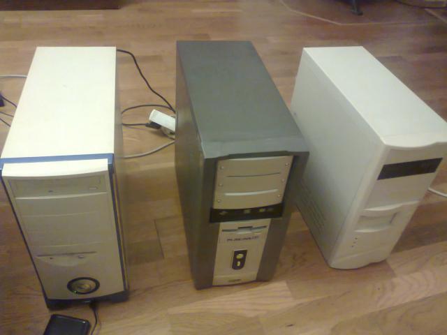 Yra 4 stat pc: pentium 4 cpu, 2.4Ghz, 512 MB RAM, 120 GB HARD pentium 4 cpu, 1.8Ghz,768 MB RAM, 80 GB HARD AMD 2200+, 1.5Ghz,256MB RAM,60 GB HARD Dar yra 3 monitoriai 2 po 15' ir vienas 19'coliu, Yra laidai, 3 klaviaturos, 2 peles viena su usb...