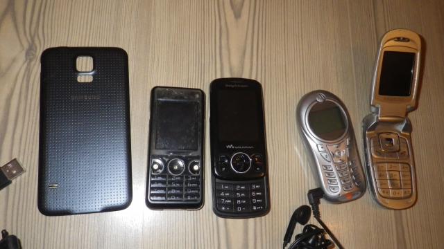 SE W660i - viskas veikia, taciau labai aptrintas ir stringa. priedo yra orig. pakrovejas, usb kabelis ir dvejos ausines. SE W100i - susiknises sleifas. nera baterijos. bet tinka ta pati is auksciau mineto w660i. Motorola C115 - uzdetas slaptazodis kazkoks. priedo ausines. Samsung X670 - viskas veikia, taciau nesilaiko baterija. dar priedo samsung galaxy s5 (jeigu neklystu) galinis dangtelis ir keletas motorola (v3) ir siemens ausiniu bei pakrov. + sony xperia z (z2) baterija ir sauja telefoninio sla