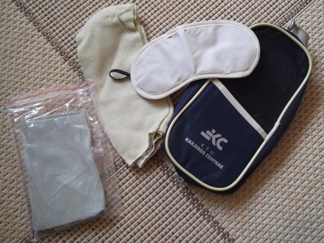 Naujas. Firminis :D Iš rinkinio pora daiktų tikrai verti dėmesio.. Pats krepšiukas ir kaklo pagalvė pripučiama. Dar yra raištis miegojimui ir kojinės.