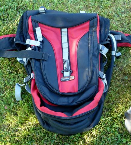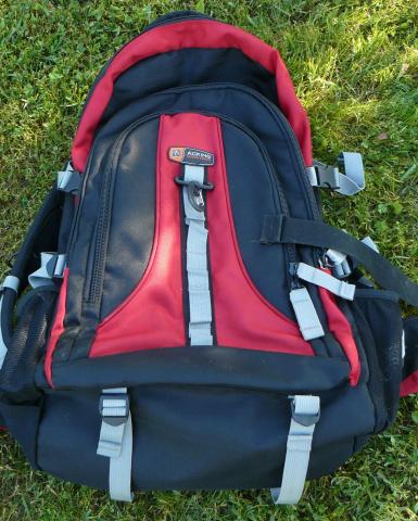 Kelioninė kuprinė trijų skyrių. Labai talpi, daug kišenių, nepavargsta nugara daug keliaujant, nes nugaros pusėje yra pastorinta ir per vidurį griovelis, kad cirkuliuotų oras, per juosmenį yra diržas su kišenėm, kad galėtum susijuosti, šonuose yra po kišenę.