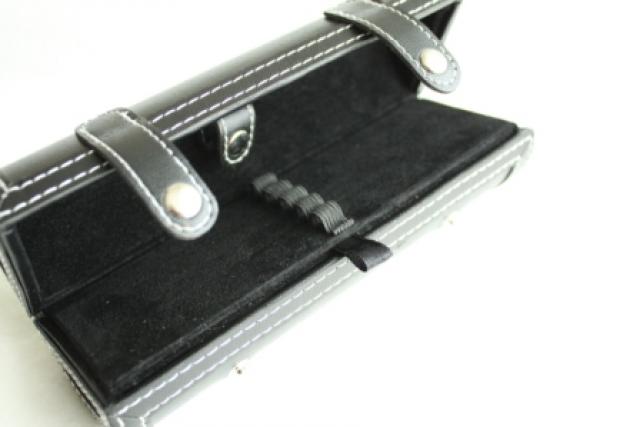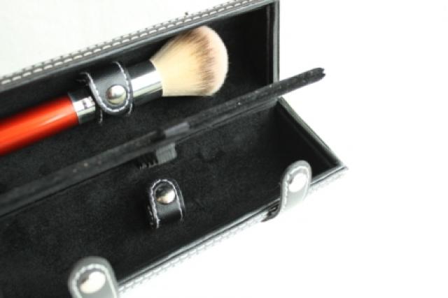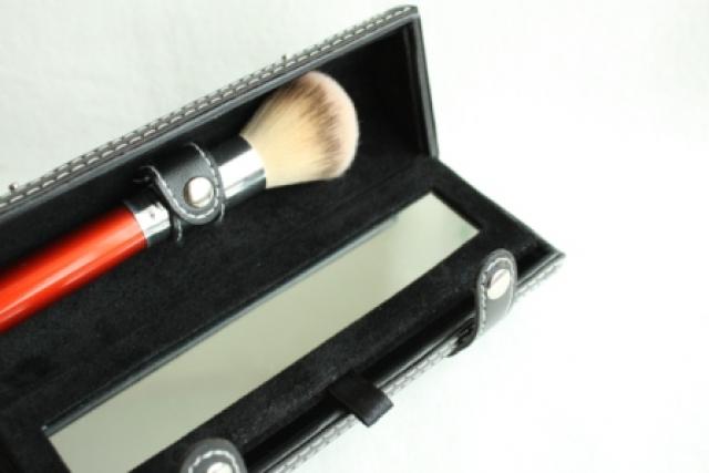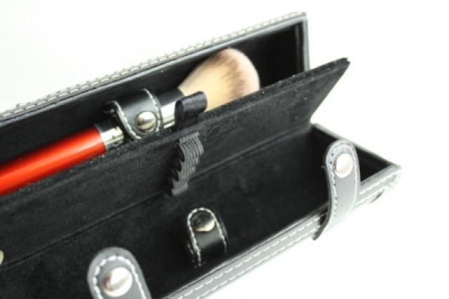 Patogus,kietas dėklas neleis šepetėliams prarasti formos kelionės metu. Yra du skyreliai, viename yra veidrodėlis ir vieta dideliam pudros sepetėliui, kitame skirelyje 6 vietos mažesniems akių šepetėliams. Vidinis dėklo ilgis 16,5 cm. Parduodamas be šepetėlio.