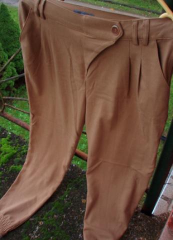 Labai gražios, madingos, ryžos / smėlinės spalvos kelnės su kloste priekyje ir rauktais, aptemptais galais. Deja man kiek per didelės kadangi nešioju S/M o jos manau M/L dydžio.
