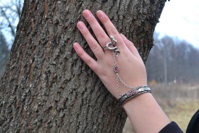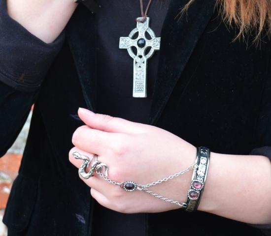 keltiškas kryžius ir apyrankė su žiedu gyvate
