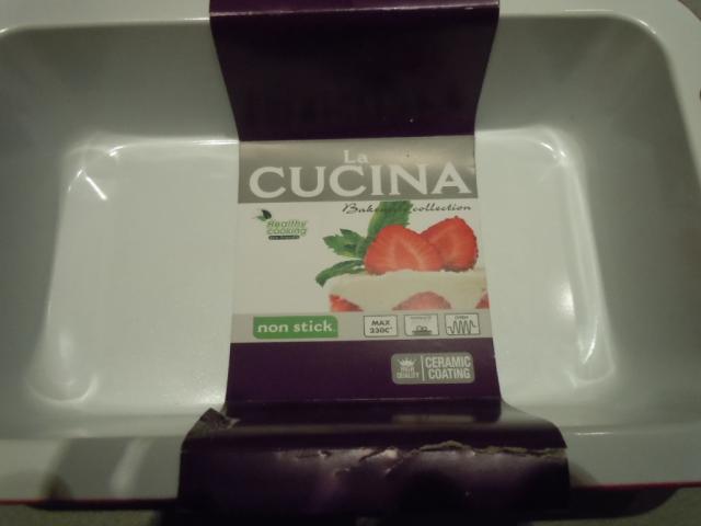 Nauja. Keramikinė kepimo forma su silikoninėmis rankenėlėmis. Matmenys: 24 * 13 * 6 cm Gamintojas: Nyderlandai