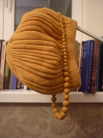 kepurė-beretė + plastikiniai karoliai. nešiota kokį vieną kartą