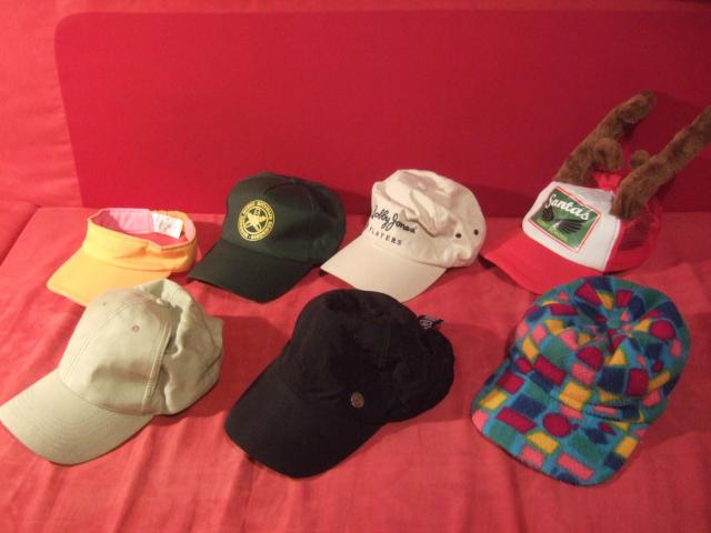 Keletas nenaudojamų kepurių. Būklė gera, apie kažkurią patikusią teiraukitės žinute arba telefonu :) (861476282). Turiu visų kepuraičių nuotraukas atskirai, jei domina detalės. Sąrašas (nuo viršaus kairės/ nuo apačios kairės): - Moteriškas snapelis, išorė oranžinė, vidus rausvas. Būklė gera, beveik nenešiota. - Miško bičiuliū stovyklos kepurė. Nauja - Bobby Jones players/CNBC sports kepuraitė. Nauja/nedėvėta - Santas Flight School kepuraitė iš Tiger'io. Nešiota vieną sykį per naujus :) - Paprasta smėl