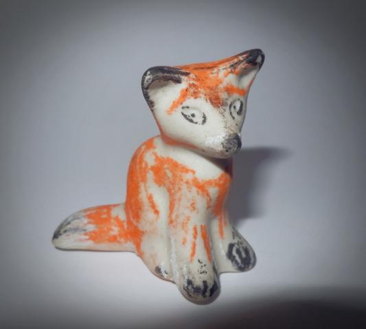labai maža sena keramikinė lapė, kažkada senai rasta buvo žemei, išblukusi, dabar papeckiota kreidelėm :) kaina sutartinė arba mainau i maža sena automodeliuka.