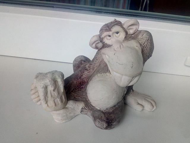 Keramikinė statulėlė Beždžionė su alaus bokalu.