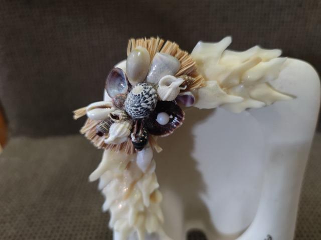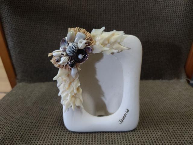 Keramikinis rėmelis nuotraukai, puoštas kriauklytėmis Jamaica.