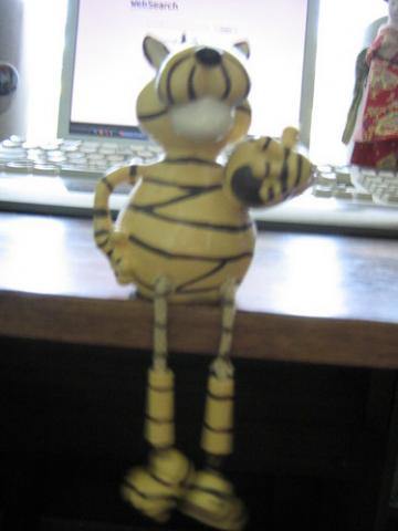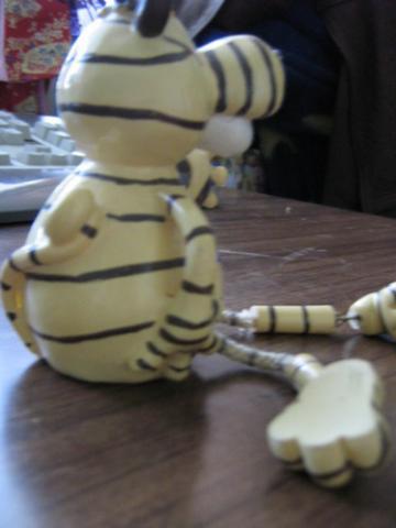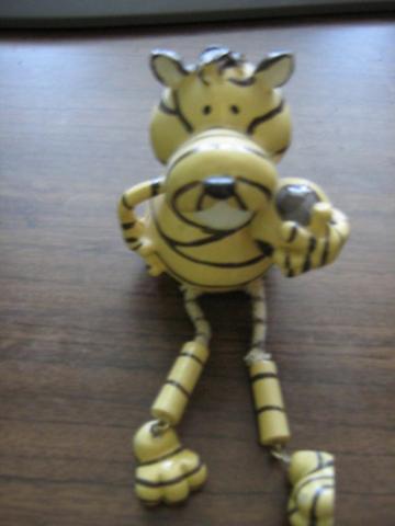 Keramikinis tigriukas(berods) su kamuoliu letenėlėje.Kojytės ant virvelių.linksmas tokis :)