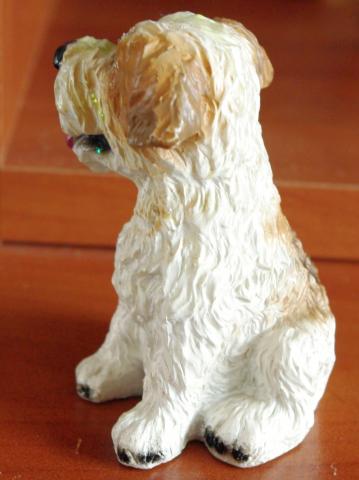 4cm aukščio, 2cm pločio. Truputi apipaišytas vaikų. Puikiai tiks kolekcijoms. Yra kitų šunų statuečių.