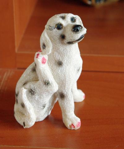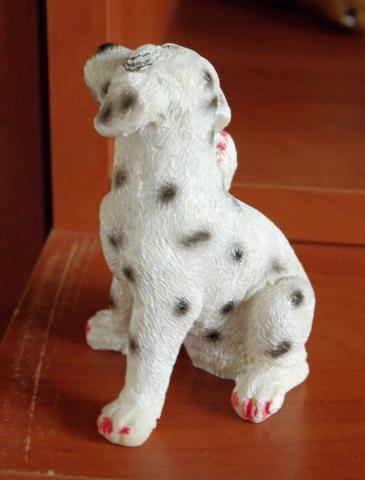 5cm aukščio, 3cm pločio dirbinys. Truputi apipaišytas vaikų. Puikiai tiks kolekcijoms. Yra kitų šunų statuečių.