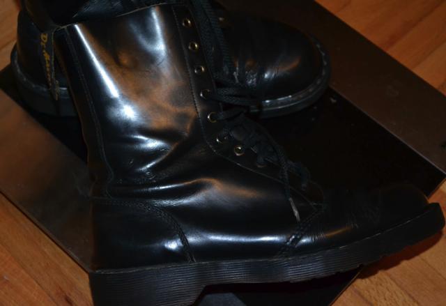 Kerzai odiniai, lyg lakuotos odos, dydis ju 37-37.5, patvarus batai nepraleidzia vandens. Originalus angliski Dr Martens kerziukai:)