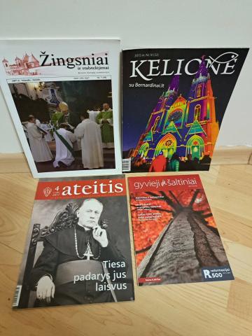 Žingsniai ir stabtelėjimai nr 2007/7, Kelionė su Bernardinai.lt nr 2015/4, Ateitis nr 2017/4, Gyvieji šaltiniai nr 2017/3, už visus 2€
