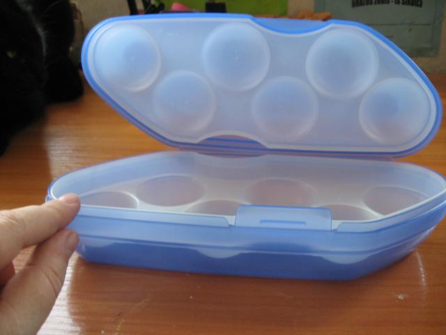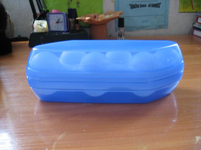 Nauja dėžutė. Pagal paskirtį skirta kiaušiniams, bet išėmus formeles, gali naudoti kaip sumuštinių dėžutę. O formelėse užšaldyti ledukų :)