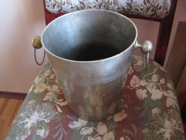 Senas žalvarinis kibirėlis Šampano buteliui. Aukštis 20.5 cm., plotis 18,5 cm. Svoris 1530 gr.