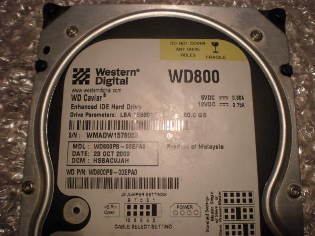 Kietasis diskas WD Caviar 80GB 7200rpm 8MB cashe Modelio numeris: WD800PB Puikios bukles, Bad sektoriu nera , patikrintas su HDAT2 4.9B1.