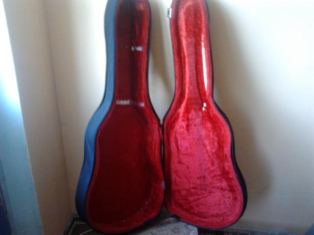 Kieto korpuso klasikinės gitaros dėklas raudonu vidumi.. panašus šiek tiek į karstą :DD