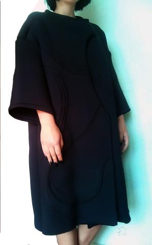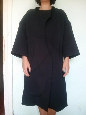 Kimono tipo rankovės, medžiaga apdorota siūvimo mašinos technologijomis, laisvas ytin patogus, bei neįprastos konstrukcijos švarkelis, dydis labai universalus, tinka rudens, pavasario sezonui. Siūvau pati.