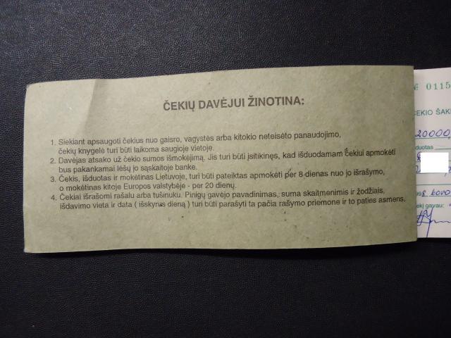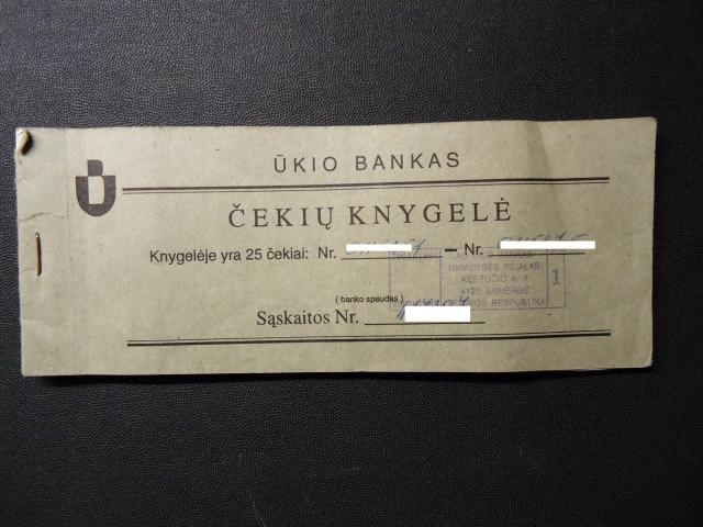 ŪKIO BANKO ČEKIŲ KNYGELĖ