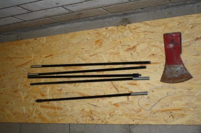 Yra dar nedidelis kirvukas su silpnu kotu, o palapinės dalių tai tik prieangio vamzdžiai liko