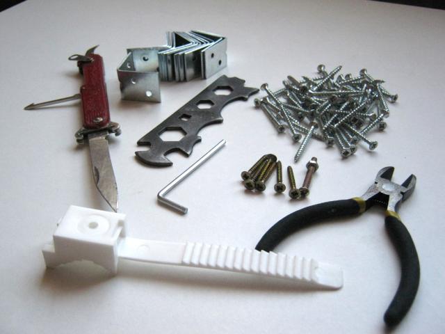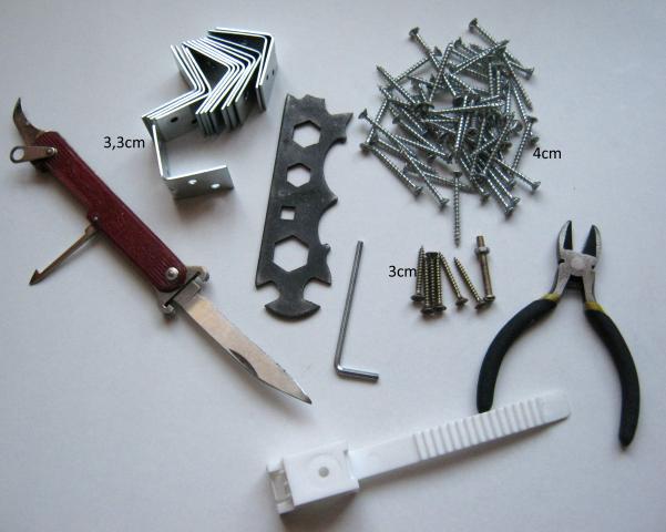 Kišeninis peilis, medvarščiai, replės, kampukai, raktai, suveržėjas