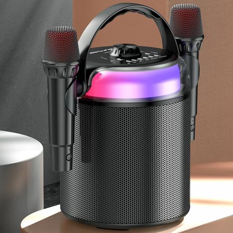 Moderni išvaizda, stabilus veikimas ir ilgas tarnavimo laikas, RGB šviesos. Karaoke garsiakalbis su dviem mikrofonais gali būti naudojamas kaip bluetooth garsiakalbis, kuriuo labai patogu naudotis. KITE „Bluetooth“ dviejų mikrofonų karaoke turi belaidį muzikos srautinį perdavimą, todėl galite klausytis mėgstamos muzikos, vaizdo įrašų ar filmų bet kur! Greitas įkrovimo greitis: galite krauti naudodami įkrovimo laidą, taip pat lengvai įkrauti garsiakalbį per savo mobilųjį telefoną ar kitus įrenginius. Pag