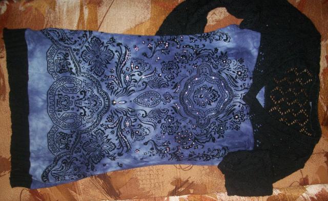 Ne tokia kaip visi suknyte/tunika.idomios violetines spalvos su perejimais ir juodu elementu, rankoves ir apacia megzti.Dekoruota kristaliukais,.Dydis parasytas 1,bet yra universalus,nes yra elastano ir tamposi. Jei kas domina,klauskite.