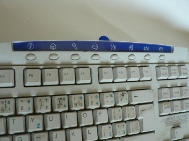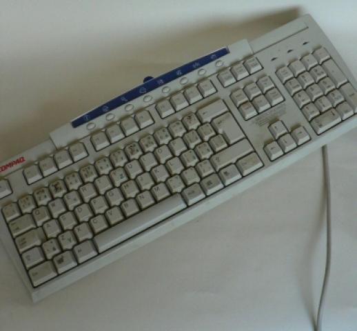 Gera klaviatūra COMPAQ su programuojamais mygtukais, prisijungia per standartinę klaviatūros jungtį.