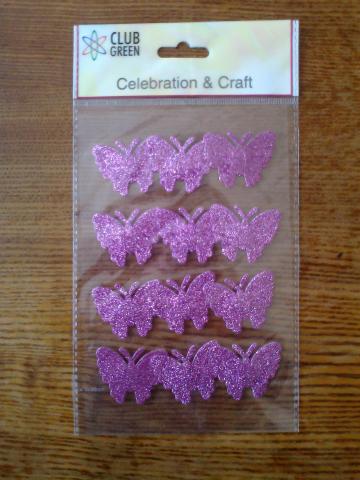 Klijuojami violetinės spalvos drugeliai .Naujos 4 pakuotės po 12 drugeliu kiekvienoj.