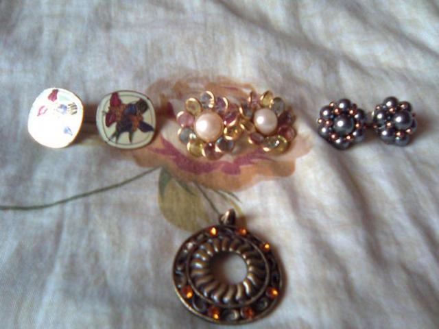 vos ne antikvariniai angliski auskariukai...pilki is perliuku-klipsai.ir didelis pakabukas be grandineles.