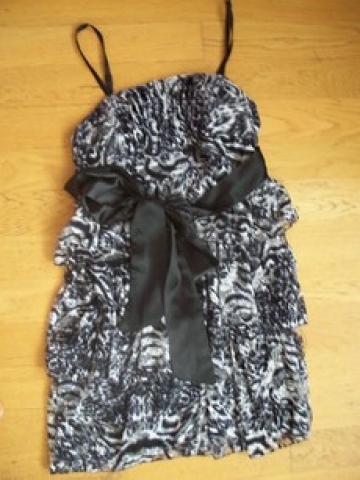 Du kart užsidėta klostuota suknelė. Susiriša kaspinas kuris gali būti priekyje arba gale. Be defektų.