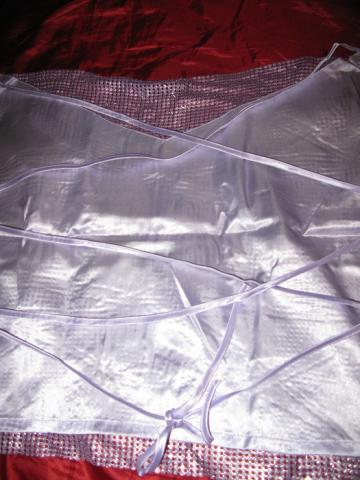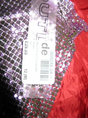 Ypatingai seksuali, iskirtine Outline palaidine, atvira nugara, svelniai alyvine spalva. Priekine dalis susideda is metaliuku, apacioje pluostas, kad nebadytu, o nugaroje susirisa. Plotis 46, ilgis 42 cm. Dydis uk 12